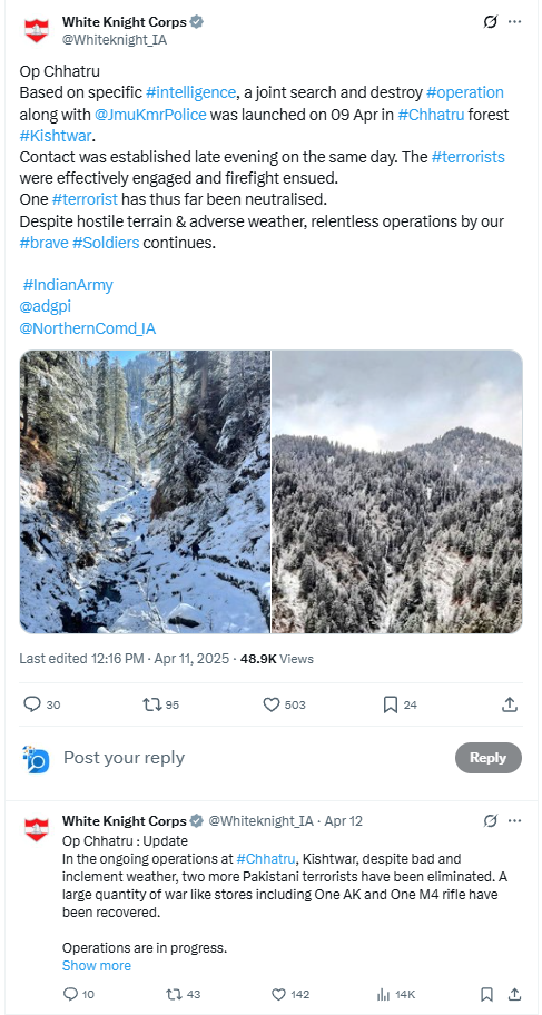 The White Knight Corps (16 Corps), Indian Army, also shared official updates on X on April 11, 2025, verifying the same facts.