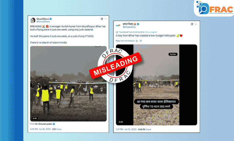 A viral video is shared where a huge crowd can be seen on the ground around a plane flying in an open field. While sharing the video, users have claimed that it claims that a teenager named Avnish Kumar from Muzaffarpur, Bihar, built a working plane in just one week using scrap materials, spending only ₹7,000.