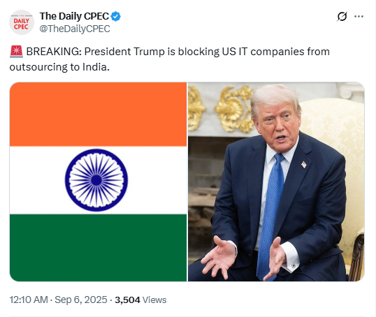 Amid this, the social media users have claimed that President Trump is blocking US IT companies from outsourcing to India.