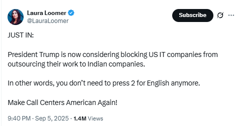 Upon investigation, we found the claim to be misleading. There has been no official statement or policy from President Trump or U.S. officials imposing such restrictions. The rumor originated from activist Laura Loomer, who posted on X that Trump was “considering blocking outsourcing.”
