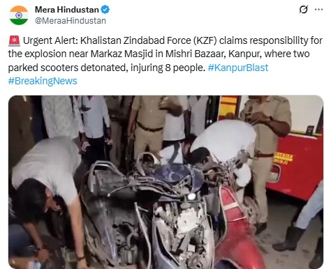 Social media users have claimed that Khalistan Zindabad Force (KZF) takes responsibility for the explosion near Markaz Masjid, Kanpur, Uttar Pradesh. An X user posted the following claim on the 8th of October, 2025, at 10:13 pm.