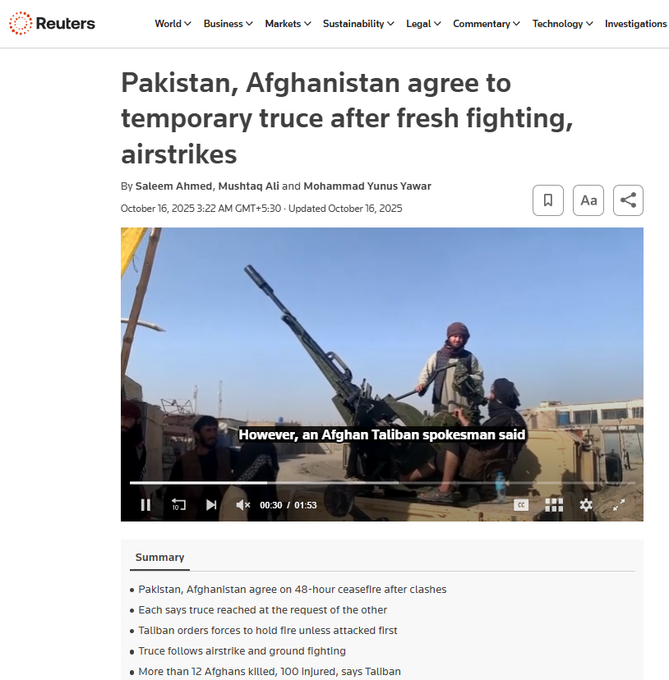 Media reports confirm that Pakistan’s Foreign Ministry said the truce was reached “at Afghanistan’s request”, while Taliban spokesman Zabihullah Mujahid stated it was “at the insistence of Pakistan.” The two sides differ on who initiated the ceasefire, but the Taliban government issued no formal request letter or announcement.