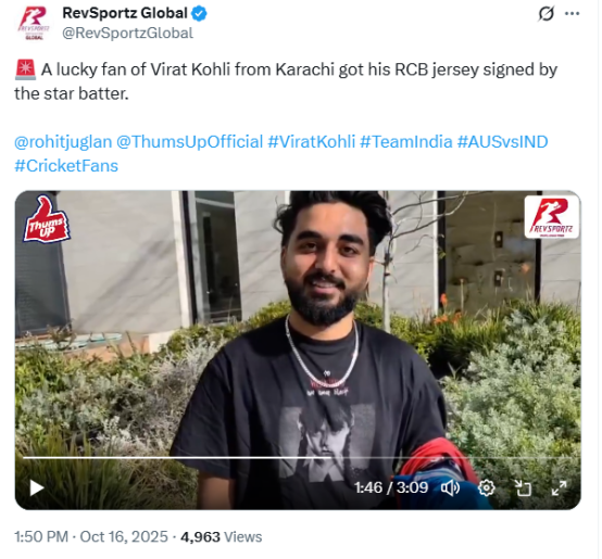 Upon reverse image search, our team landed on the account @RevSportzGlobal, which posted a video of a fan from Karachi, Pakistan, getting his Royal Challengers Bengaluru (RCB) jersey signed by Kohli at around 2 o’clock in the afternoon.