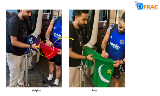 However, the image of Virat Kohli signing the RCB jersey was altered to present him as signing the Pakistan national team jersey. Around the main evening hours, the altered image was shared. A comparison image is also provided for deeper insight.