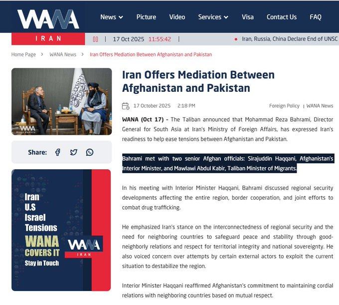 On the contrary, recent diplomatic updates confirm his continued role as Afghanistan’s Interior Minister. In the latest reports, Haqqani met with Iran’s envoy Bahrami to discuss regional security, border cooperation, and anti–drug trafficking efforts, demonstrating that he remains active in official duties.