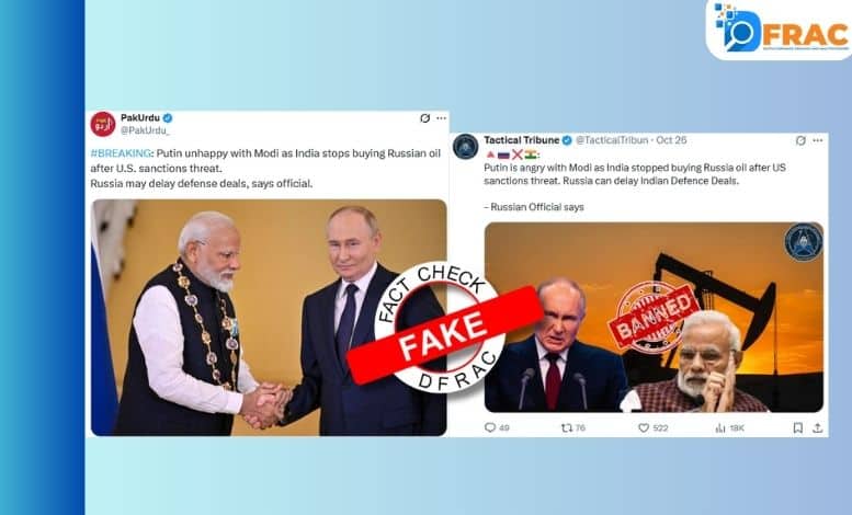 And a decision by Russia to delay defence deals with India is also fake. No reports mention the delay of defence deals in the wake of “Russian oil sanctions”. In fact, the defence ties between both nations are rapidly advancing and reaching new heights.