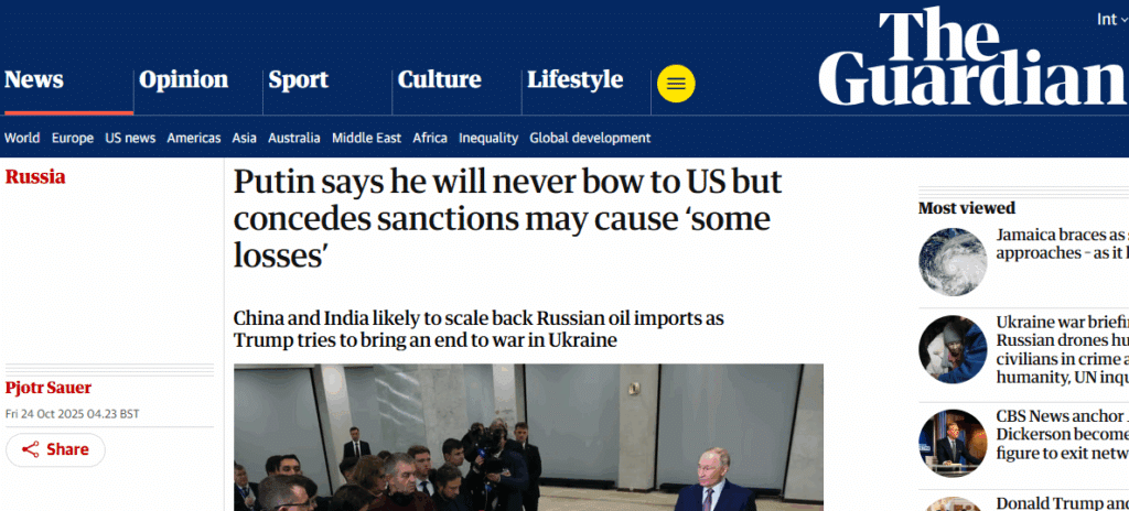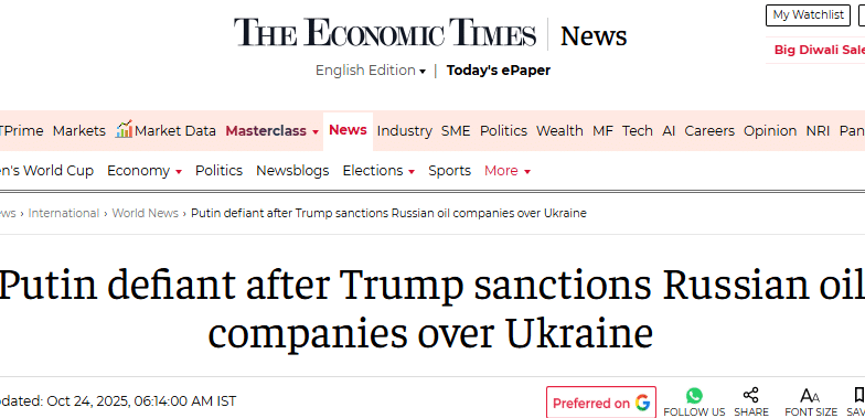 The DFRAC team found no credible news outlets that reported on a disagreement between Indian-Russia ties. We went through the official X account of the Ministry of Foreign Affairs of Russia (@mfa_russia). After analysing their posts, we found no unpleasant remark against India made by the Russian President Vladimir Putin or any of the Russian officials. However, Putin has made an appalling statement against the U.S. Recently, two major oil companies of Russia, Lukoil and Rosneft, have been sanctioned by the United States to curb Russian oil flowing into the market. To counter these fresh sanctions, Putin made a statement against the U.S., not India.