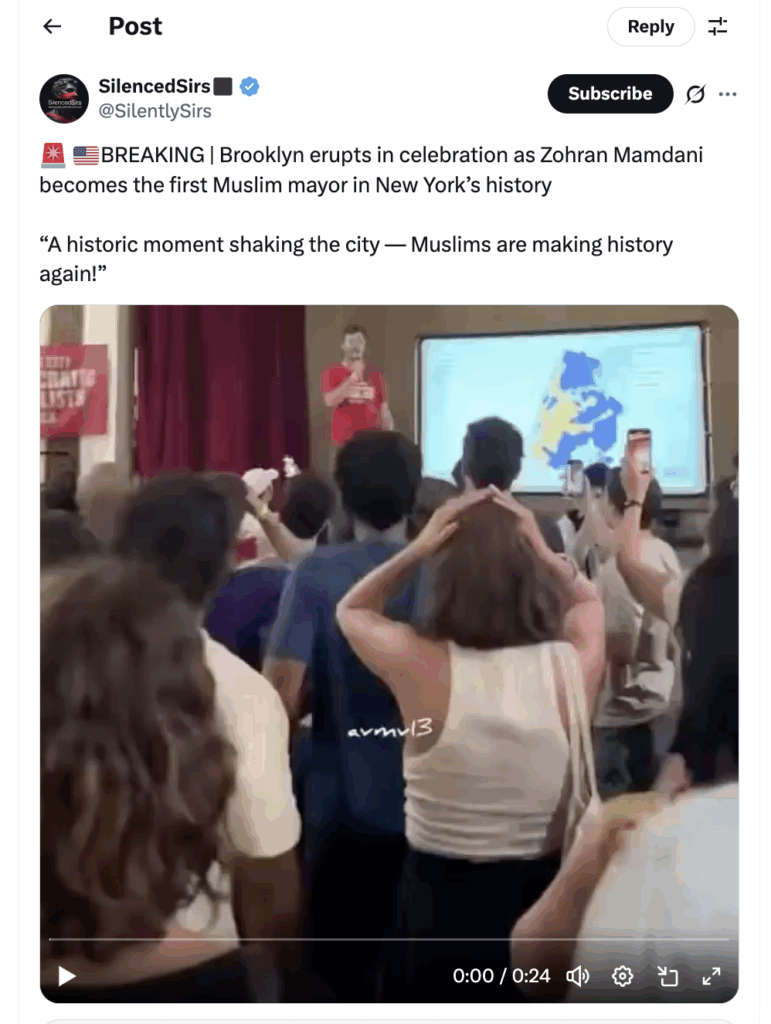 Many social media users have claimed that Brooklyn erupts in celebration as Zohran Mamdani becomes the first Muslim mayor in New York’s history