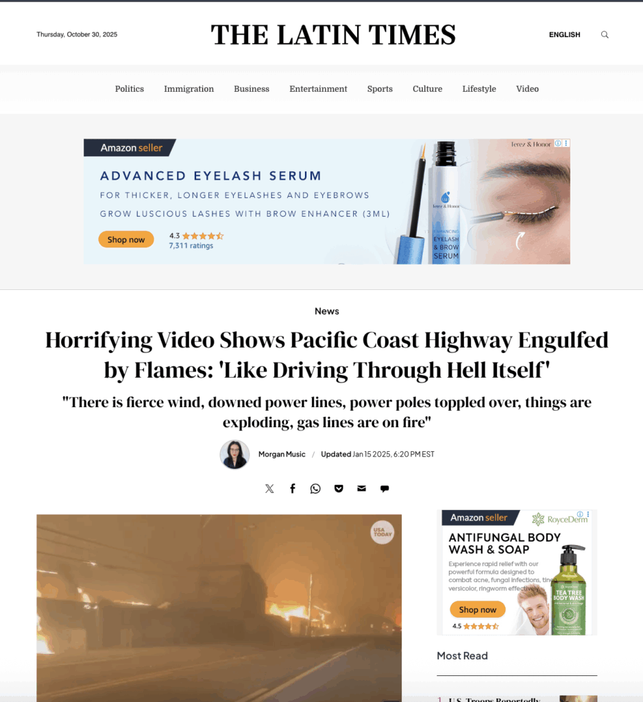 According to news reports, which can be viewed here and here, this catastrophic event resulted in widespread destruction, loss of acres of property, and deaths of nearly 30,000 Los Angeles inhabitants, including celebrities. Official details regarding the wildfire can be viewed here.