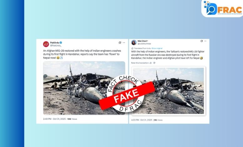Therefore, the claim of a Taliban jet getting destroyed in its first flight is fake. The Taliban has no MiG-29 fighter aircraft with them, and no Indian engineers went to Afghanistan to restore any fighter aircraft for Afghanistan.