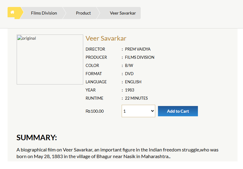 The YouTube video displayed the “Films Division” logo of the Government of India at the bottom right corner. Using this as a lead, we performed another keyword search, which directed us to a similar video on a YouTube channel, posted on 28 December 2013. According to the video’s description, “This Filmfare award-winning documentary was directed by Prem Vaidya for the Films Division of the Government of India. It was released in 1983, the birth centenary year of Savarkar.”
