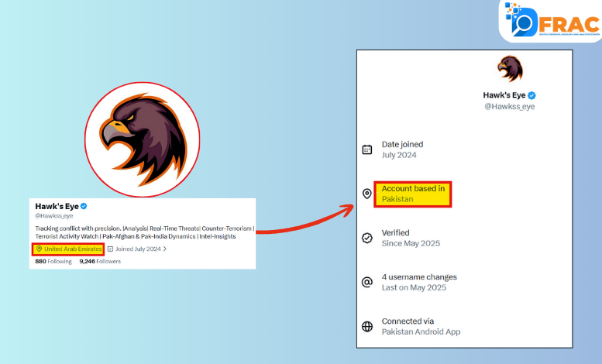 With 9,249 followers and a verified badge, this account calls itself a source for “real-time threat and intelligence insights.” Its location is Pakistan.