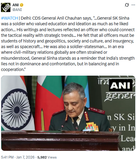 After investigating the original clip of CDS Anil Chauhan, the DFRAC team determined that this video is fake and digitally altered. We found the original video, which was actually a speech commemorating Lieutenant General Srinivas Kumar Sinha, PVSM, ADC (7 January 1926 – 17 November 2016), an Indian Army General who served as Vice Chief of Army Staff. Furthermore, we found no credible news agencies confirming that General Anil Chauhan made any of the alleged statements.