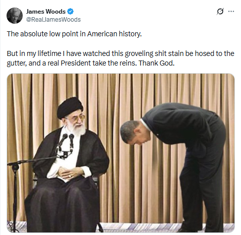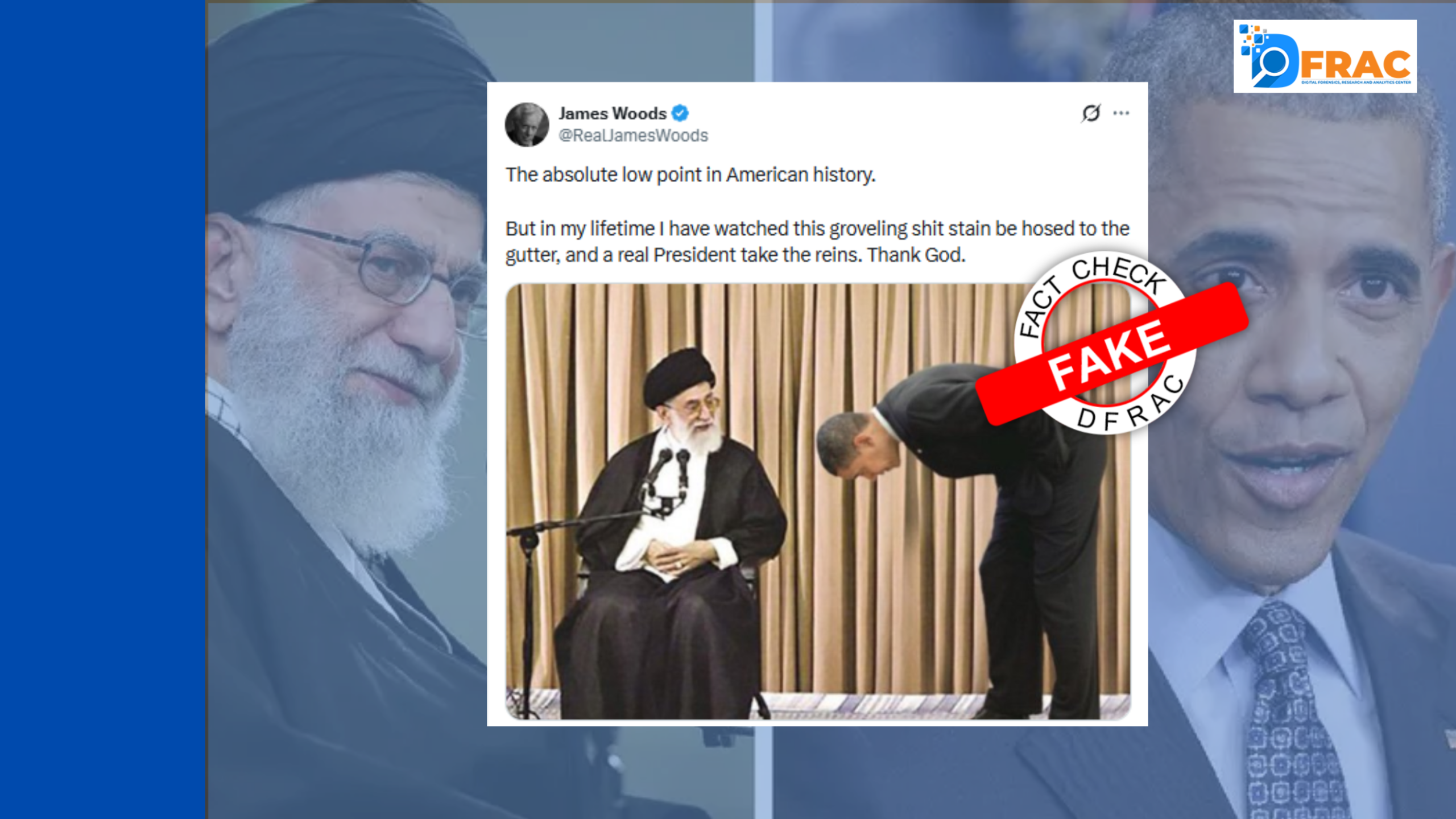 An image circulating online shows Iran’s Supreme Leader Ayatollah Ali Khamenei and former U.S. President Barack Obama bowing before Iran’s leader. Users sharing the image have called it “the absolute low point in American history.”