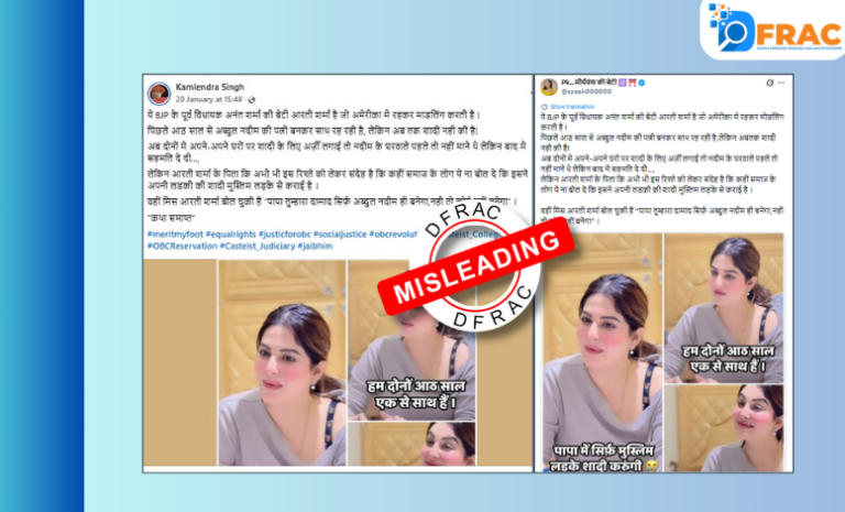 DFRAC’s fact check clearly shows that the viral video is neither of BJP leader Anant Sharma’s daughter Aarti Sharma, nor is the woman involved in any relationship with a Muslim man. The video is of Gujarat-based beauty expert Dimple Ahuja. Therefore, the claim made by users is misleading.