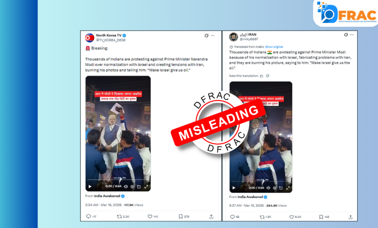 While sharing the video, a user named “North Korea TV” wrote in a post: *“Breaking: Thousands of Indians are protesting against Prime Minister Narendra Modi over normalization with Israel and creating tensions with Iran, burning his photos and telling him: ‘Make Israel give us oil.”