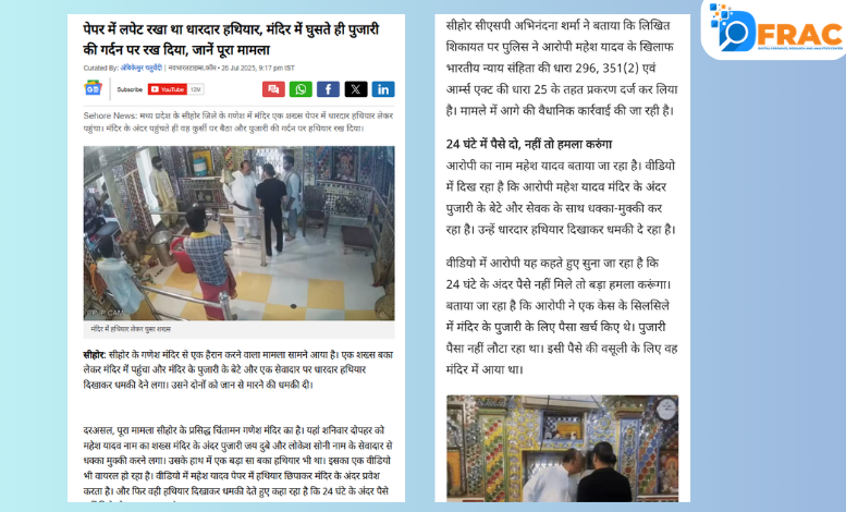 DFRAC’s team, after investigating the viral video, found that the incident is not recent but dates back to July 2025. The accused in the incident is Mahesh Yadav, against whom the police had registered a case and taken action at that time. We found reports from Navbharat Times and Dainik Bhaskar, dated July 26, 2025, regarding the viral video. These reports state that the accused, identified as Mahesh Yadav, threatened the priest and demanded money.
