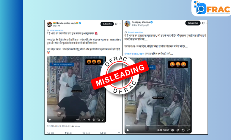 A video is being shared on social media claiming that a Muslim man entered the ancient Chintamani Ganesh Temple in Sehore, Madhya Pradesh, armed with a sword and attempted to kill the temple priest. The viral video showed the accused man wielding a sword and attempting to assault the priest and another associate.