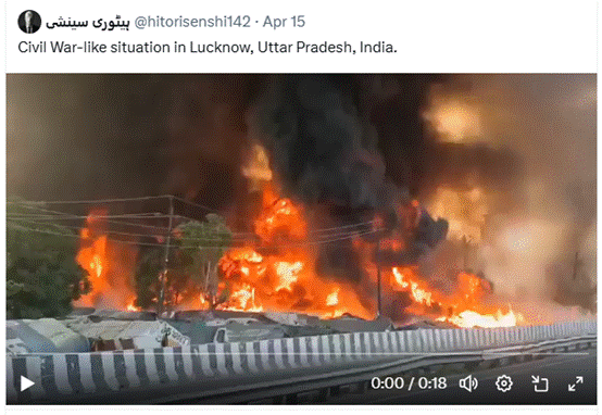 The claim made in the viral video is misleading. The video does not depict a “civil war” situation in Lucknow; rather, it shows a massive fire in the slums of the Vikas Nagar area, which spread rapidly after several gas cylinders exploded.