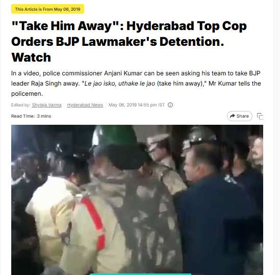 वहीं हमें इस घटना के बारे में NDTV की एक रिपोर्ट मिली, जिसमें बताया गया है कि तेलंगाना में भाजपा विधायक राजा सिंह उन लोगों में शामिल हैं, जिन्हें हैदराबाद में पुलिस हिरासत में लिया गया। यह घटना उस भूमि पर शेड बनाने को लेकर हुई झड़प के बाद हुई जहां एक पूजा स्थल को ध्वस्त कर दिया गया था।
