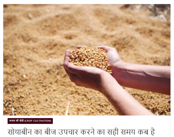 जांच को आगे बढ़ाते हुए हमने सोयाबीन के उपचार से जुड़ी भी जानकारी एकत्रित की। इस दौरान हमें राष्ट्रीय कृषि अखबार कृषि जगत की एक रिपोर्ट मिली। जिसमे बताया गया कि सोयाबीन की बुवाई से पहले फफूंदनाशी या कीटनाशकों से बीज का उपचार करना जरूरी है। आमतौर पर बीज का उपचार बीज बोने के 24 घंटे पहले किया जाता है।