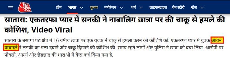 DFRAC के फैक्ट चेक से साफ है कि घटना में लव जिहाद का एंगल नहीं है। आरोपी युवक का नाम आर्यन वाघमले है। इसलिए यूजर्स का दावा भ्रामक है।