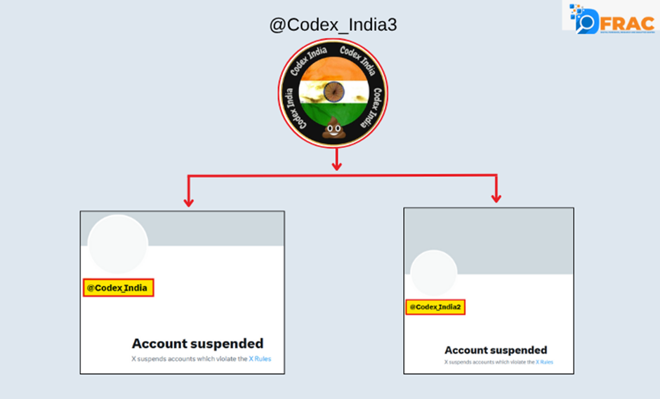 हमारी टीम ने अपनी जांच के दौरान पाया कि कोडेक्स इंडिया के इससे पहले कई अकाउंट्स को एक्स (पूर्व ट्विटर) द्वारा संस्पेंड किया जा चुका है। इससे पहले @Codex India और @Codex India2 नामक अकाउंट्स सस्पेंड हो चुके हैं, जबकि @Codex India3 नामक अकाउंट अभी संचालित है और @Codex India4 को जेम्स डीन खुद अपने नाम से संचालित करता है।