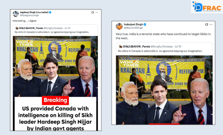 कुंगफू पांडा की खालिस्तानी प्रोपेगेंडा करने वाले नेटवर्क तक पहुंच है। इसकी फेक सूचनाओं वाले पोस्ट को सोशल मीडिया पर खालिस्तानी प्रोपेगेंडा करने वाले अकाउंट्स जैसे जगदीप सिंह और इंद्रजीत सिंह भी क्वोटपोस्ट करते हैं। यहां ध्यान देने वाली बात है कि जगदीप सिंह और इंद्रजीत सिंह का अकाउंट भारत में प्रतिबंधित किया गया है।