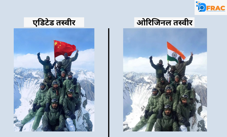 कुंगफू पांडा ने एक तस्वीर शेयर की, जिसमें भारतीय सैनिकों को चीन के झंडे के साथ देखा जा सकता है। हालांकि यह तस्वीर एडिटेड है। ओरिजिनल तस्वीर में देखा जा सकता है कि भारतीय सैनिकों ने भारत का राष्ट्रीय ध्वज तिरंगा लहराया है। इसी तस्वीर को एडिट करके उसमें तिरंगे की जगह चीन का झंडा जोड़ दिया गया है।
