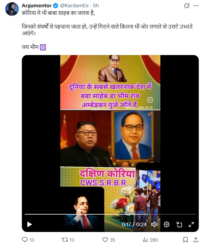 इस वीडियो के साथ एक यूजर ने लिखा, ‘कोरिया मे भी बाबा साहब का जलवा है, जिनको संघर्षों से पहचाना जाता हो, उन्हें गिराने वाले कितना भी जोर लगाले वो उलटे उभरते आएंगे। जय भीम’