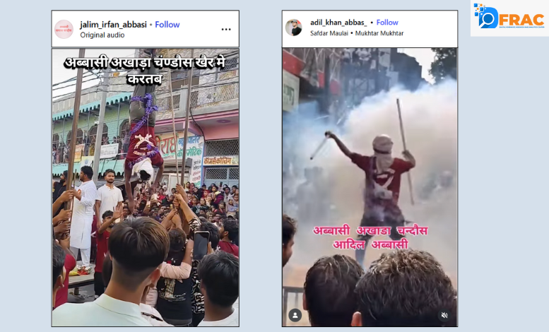 DFRAC के फैक्ट चेक से साफ है कि सोशल मीडिया पर वायरल वीडियो फिरोजाबाद का नहीं है और यह दावा भी भ्रामक है कि चोर को उल्टा लटकाकर सजा दी रही है। दरअसल यह वीडियो अलीगढ़ के चंडौस के अब्बासी अखाड़े का वीडियो, जहां अखाड़े के युवा मोहर्रम पर करतब दिखा रहे थे। इसलिए यूजर्स का दावा गलत है।