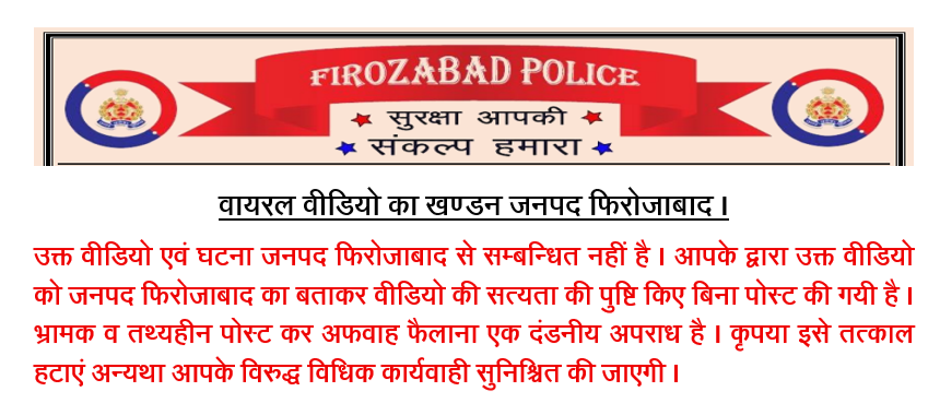 वहीं आगे की जांच करने पर हमें फिरोजाबाद पुलिस का एक पोस्ट मिला, जिसमें खंडन करते हुए बताया गया है कि वायरल वीडियो फिरोजाबाद का नहीं है।