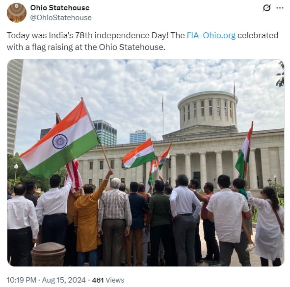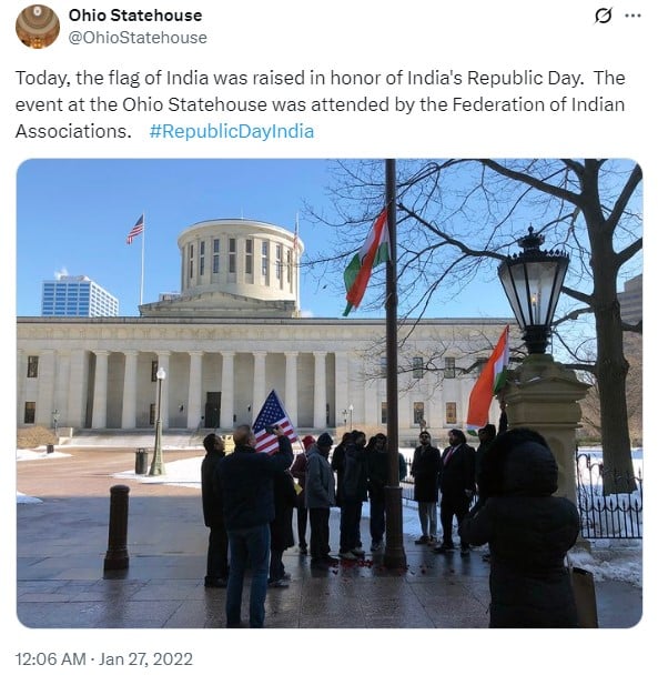 इसके साथ ही आगे की जांच में हमने X पर ओहियो स्टेटहाउस के हैंडल की भी जांच की। वहां हमें अन्य वर्षों से जुड़े भारत के स्वतंत्रता दिवस और गणतंत्र दिवस मनाने की तस्वीरें और वीडियो भी मिले। इस दौरान भारतीय ध्वज तिरंगे को फहराते हुए देखा जा सकता है।