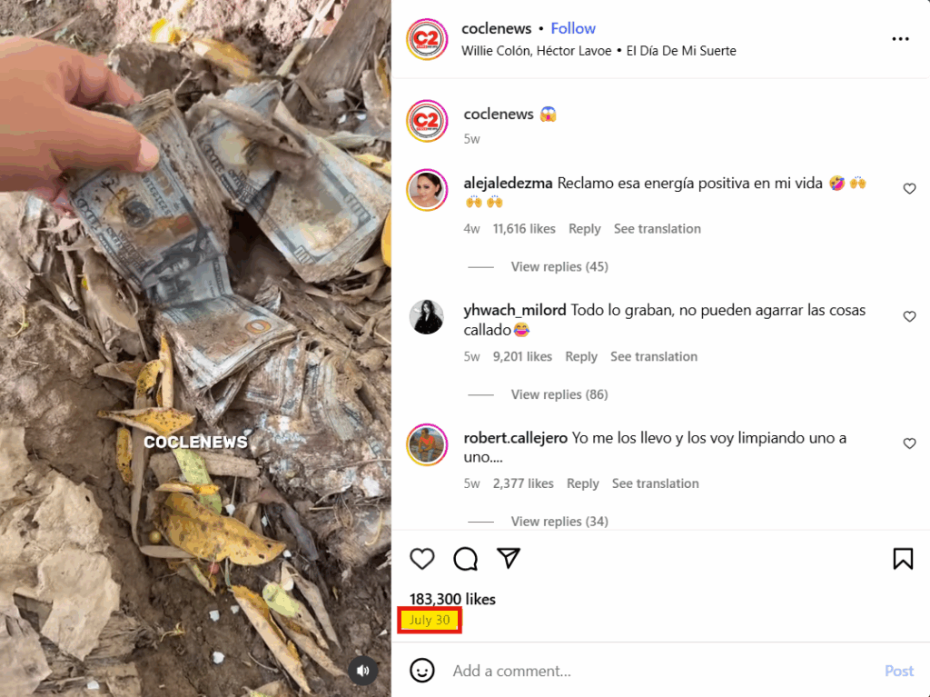 DFRAC की टीम ने वायरल वीडियो की जांच के लिए सबसे पहले वीडियो को की-फ्रेम्स में कन्वर्ट किया, फिर रिवर्स इमेज सर्च किया। हमें यह वीडियो 30 जुलाई 2025 को कई सोशल मीडिया प्लेटफॉर्म्स पर पोस्ट मिला। इंस्टाग्राम पर COCLE NEWS ने इस वीडियो को 30 जुलाई को पोस्ट किया है।