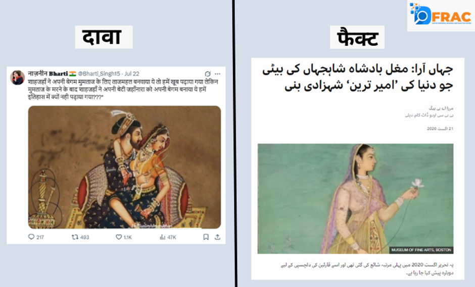 DFRAC की टीम ने जांच में पाया कि यह फेक न्यूज है। शाहजहां का अपनी बेटी जहांआरा से शादी करने का कोई ऐतिहासिक प्रमाण नहीं मिलता है। DFRAC की टीम ने इसका पहले भी फैक्ट चेक किया है, जिसे यहां पढ़ा जा सकता है।