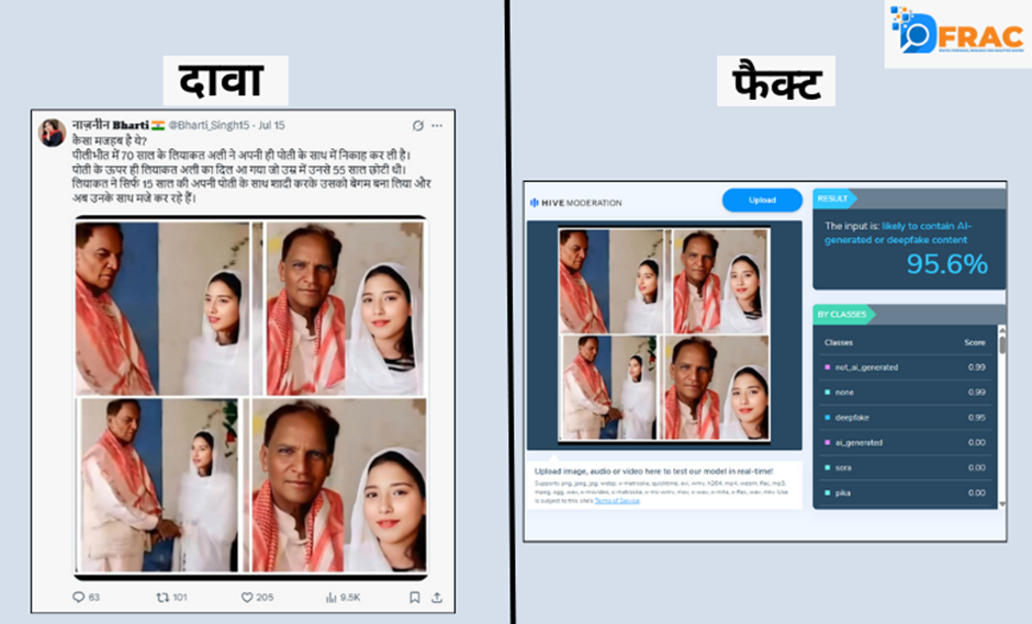 नाजनीन भारती ने कई तस्वीरों का एक कोलाज शेयर करते हुए दावा किया कि उत्तर प्रदेश के पीलीभीत जिले में 70 वर्षीय दादा लियाकत अली ने अपनी पोती से शादी कर ली।