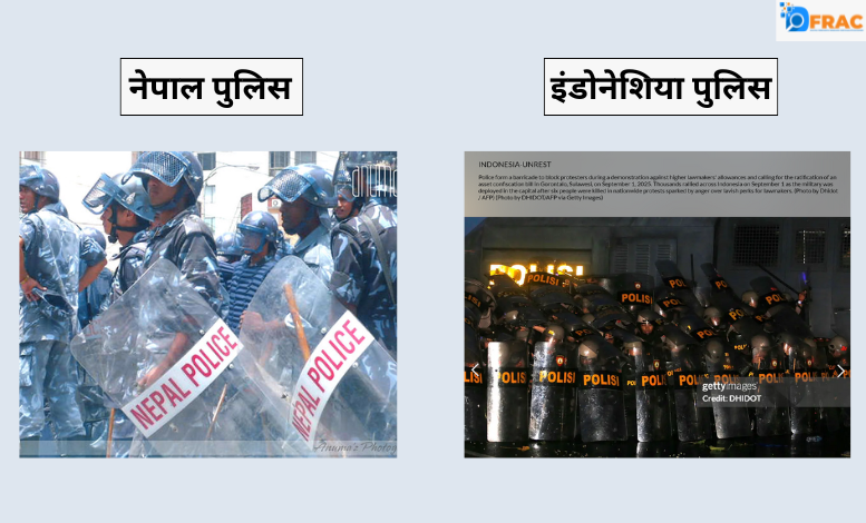 इसके अलावा आगे की जांच करने पर हमने पाया कि वीडियो में देख रहे पुलिसकर्मियों ने जिस सुरक्षा ढाल (Riot Shield) से खुद को कवर किया है, उस पर अंग्रेजी में POLISI लिखा हुआ है, जो इंडोनेशिया की पुलिस को संदर्भित करता है। हम यहां दिए कोलाज में इंडोनेशिया पुलिस और नेपाल पुलिस की तस्वीरों के साथ यह स्पष्ट कर रहे हैं कि यह वायरल वीडियो इंडोनेशिया का ही है।