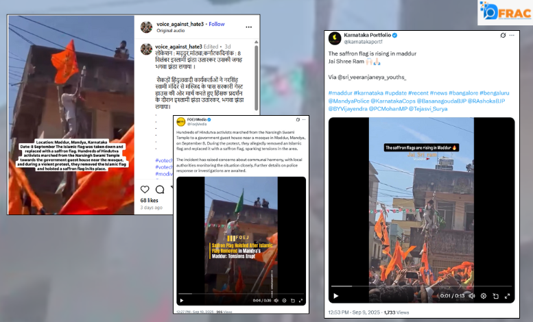 DFRAC की टीम ने वायरल वीडियो की जांच के लिए वीडियो के की-फ्रेम्स को रिवर्स इमेज सर्च किया। हमें इससे मिलता-जुलता वीडियो सोशल मीडिया पर पोस्ट मिला। यूजर्स ने इस वीडियो को कर्नाटक के मांड्या के मंडूर का बताते हुए शेयर किया है। यूजर्स के मुताबिक नरसिंह स्वामी मंदिर से सरकारी गेस्ट हाउस की ओर मार्च करने के दौरान एक युवक ने इस्लामी झंडा उतारकर भगवा झंडा लगा दिया।
