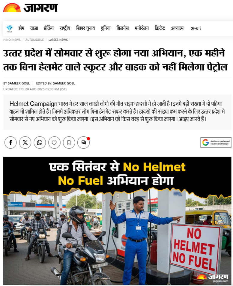 भारत के कुछ राज्यों जैसे उत्तर प्रदेश, छत्तीसगढ़, और मध्य प्रदेश (भोपाल, इंदौर) में “नो हेलमेट नो पेट्रोल” नियम लागू कर दिया गया है। इसी को लेकर सोशल मीडिया पर यह दावा किया जा रहा है कि अब चंडीगढ़ प्रशासन ने भी सड़क सुरक्षा के लिए यही नियम लागू करने का बड़ा कदम उठाया है।
