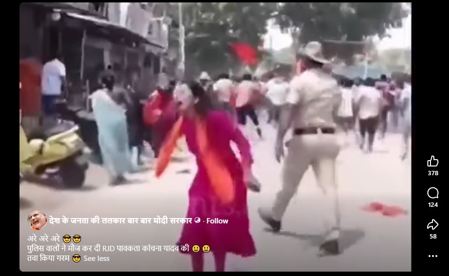 सोशल साईट फेसबुक पर एक यूजर ने वायरल वीडियो को शेयर करते हुए लिखा कि अरे अरे अरे 😎😎 पुलिस वालों ने मौज कर दी RJD पावकता कांचना यादव की 😃😃