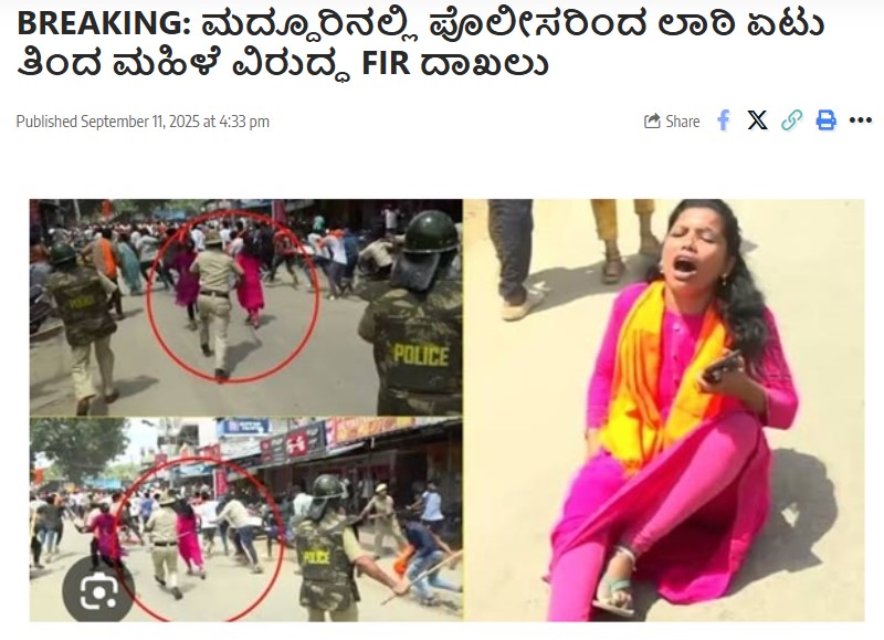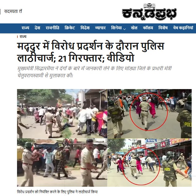 वायरल वीडियो के सबंध में मीडिया रिपोर्ट में जानकारी देते हुए बताया गया कि मद्दुर में गणेश प्रतिमा विसर्जन जुलूस के दौरान हुए पथराव के बाद पुलिस ने लाठीचार्ज कर भीड़ को तितर-बितर किया। पुलिस द्वारा लाठीचार्ज की शिकार हुई एक महिला के खिलाफ एफआईआर दर्ज की गई है। मद्दुर के शिवपुरा निवासी ज्योति के खिलाफ भी एफआईआर दर्ज की गई है, जिस पर लाठीचार्ज किया गया था। मद्दुर पुलिस थाने के इंस्पेक्टर शिवकुमार द्वारा दर्ज कराई गई शिकायत के बाद एफआईआर दर्ज की गई है। उन पर मुख्यमंत्री और मुसलमानों के खिलाफ अपमानजनक बयान देने, अन्य धर्मों के बारे में आपत्तिजनक शब्दों का इस्तेमाल करने, समुदायों के बीच दुश्मनी पैदा करने वाले बयान देने और दुश्मनी भड़काने का आरोप है।