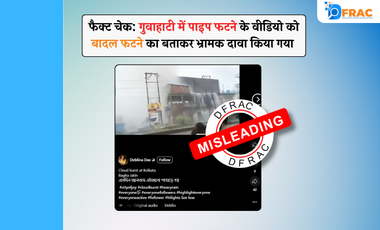 DFRAC के फैक्ट चेक से स्पष्ट है कि वायरल वीडियो कोलकाता का नहीं है और ना ही यह बादल फटने की घटना है। दरअसल यह वीडियो गुवाहाटी के चांदमारी इलाके का है, जहां 20 सितंबर 2025 को पानी की पाइपलाइन फटने की है। इसलिए यूज़र्स का दावा भ्रामक है।