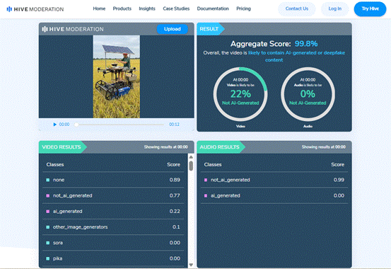 ऐसे में हमने जांच को आगे बढ़ाते हुए हमने वायरल वीडियो की AI डिटेक्टर टूल हाइव मॉडरेशन पर जांच की। हमारी जांच में सामने आया कि वायरल वीडियो के AI-जनरेटेड होने के 99.8 प्रतिशत चांस हैं।