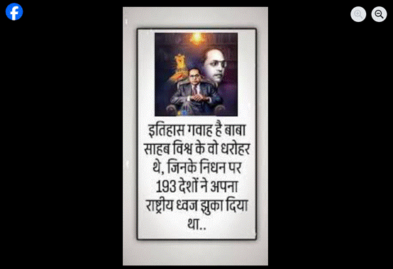 सोशल साईट फेसबुक पर यूजर ‘नास्तिक हूँ मे’ ने डॉ. भीमराव अंबेडकर की तस्वीर को शेयर कर लिखा कि इतिहास गवाह है बाबा साहब विश्व के वो धरोहर थे, जिनके निधन पर 193 देशों ने अपना राष्ट्रीय ध्वज झुका दिया था.. #fbpost #jaibhim_official #photochallenge
