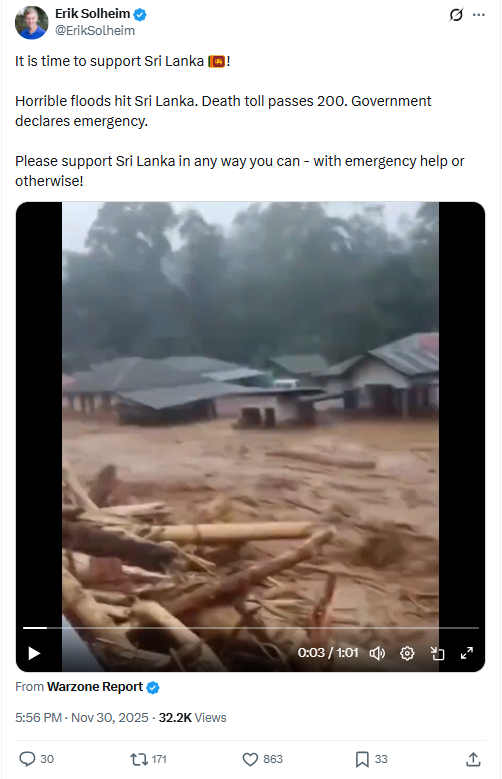 एक अन्य यूजर ने लिखा, ‘श्रीलंका को सपोर्ट करने का समय आ गया है! श्रीलंका में भयानक बाढ़ आई है। मरने वालों की संख्या 200 के पार हो गई है। सरकार ने इमरजेंसी घोषित कर दी है। कृपया श्रीलंका को किसी भी तरह से सपोर्ट करें – इमरजेंसी मदद से या किसी और तरह से!’