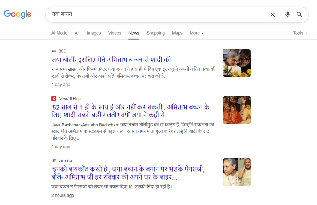 DFRAC की टीम ने जांच में पाया कि जया बच्चन का वायरल पोस्टकार्ड फेक है। जया बच्चन ने राहुल गांधी पर ऐसा कोई बयान नहीं दिया है। हमने जया बच्चन के बयान के संदर्भ में गूगल पर कुछ कीवर्ड्स सर्च किया, लेकिन किसी भी मुख्यधारा की मीडिया संस्थान द्वारा प्रकाशित ऐसी कोई न्यूज नहीं मिली। हमें हाल-फिलहाल की जया बच्चन की पत्रकार बरखा दत्त को दिए इंटरव्यू की ही खबरें मिलीं, जिसमें उन्होंने ‘शादी’ और निजी जीवन पर खुलकर बात की थी।