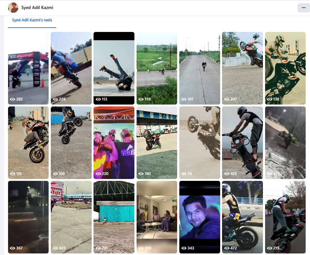 आदिल काजमी के फेसबुक पेज पर बाइक से स्टंट करते उनके फोटो और वीडियो को देखा जा सकता है।