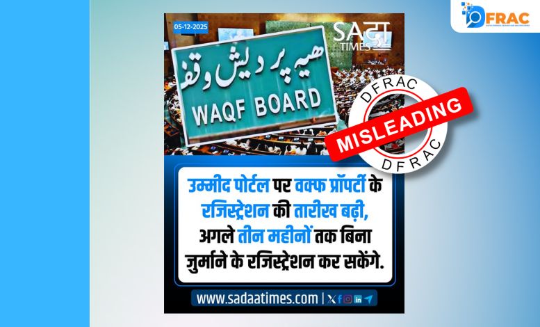 DFRAC के फैक्ट चेक से साबित होता है कि उम्मीद पोर्टल पर वक्फ संपत्ति के पंजीकरण की अवधि तीन माह तक बढ़ाए जाने का दावा भ्रामक है।