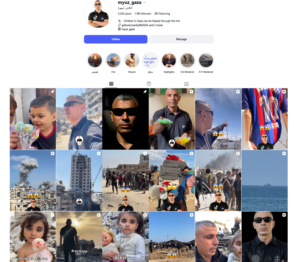 वहीं आगे की जांच में हमने पाया कि myuz_gaza के इंस्टाग्राम अकाउंट पर ग़ाज़ा और उससे जुड़ी सूचनाएं, वीडियो और फोटो शेयर किए जाते हैं।