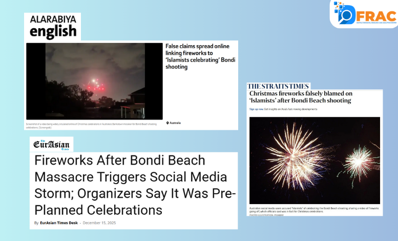 इन मीडिया रिपोर्ट्स में बताया गया है, ‘ऑस्ट्रेलियाई सोशल मीडिया यूजर्स ने सिडनी के उपनगर बॉन्डी बीच पर हुए सामूहिक नरसंहार का जश्न मनाने का आरोप “इस्लामवादियों” पर लगाया है। उन्होंने आतिशबाजी का एक वीडियो साझा किया है, जिसे अधिकारियों ने क्रिसमस समारोह के लिए बताया है। बैंकस्टाउन से सटे उपनगर पैडस्टो के रोटरी क्लब ने कहा कि आतिशबाजी हमारे वार्षिक क्रिसमस कैरल कार्यक्रम का हिस्सा थी, इस कार्यक्रम और आतिशबाजी की योजना महीनों पहले बनाई गई थी। इसका बॉन्डी में हुए आतंकवादी हमले से कोई लेना-देना नहीं है और यह रंगीन आतिशबाजी हर साल होती है।’